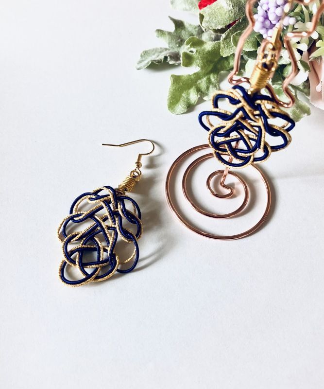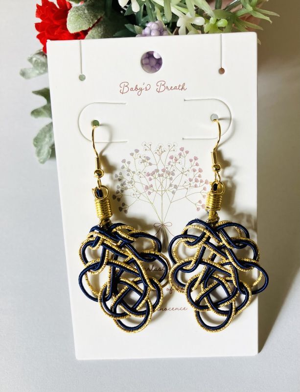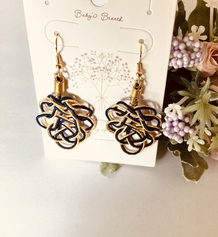 濃紺とラメゴールドの2本で結んだ葉結びをピアスに仕立てました。