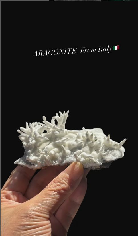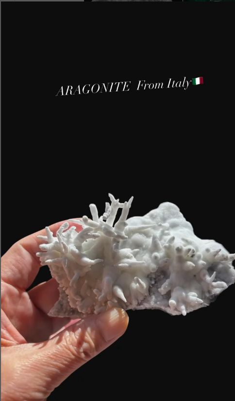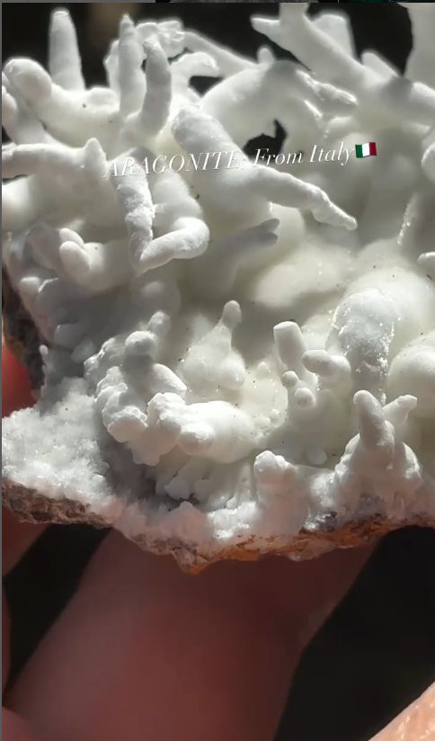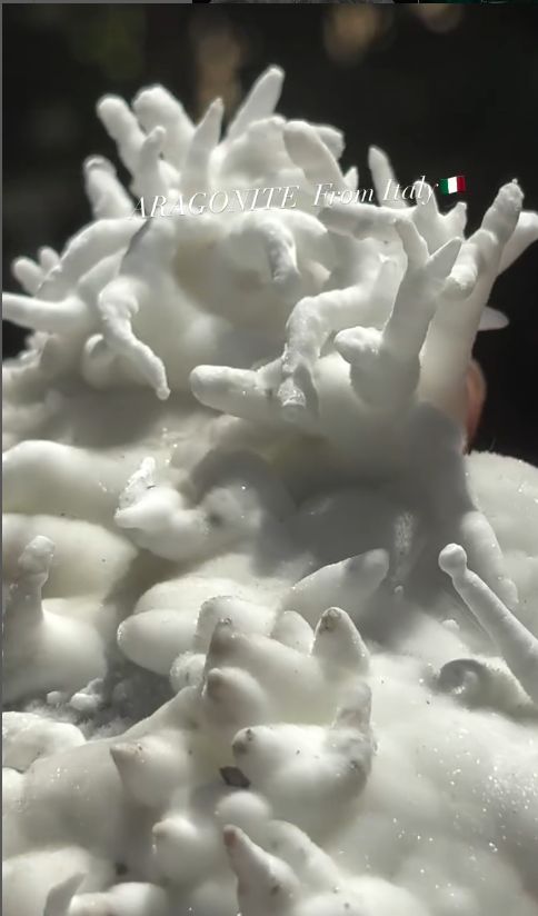 現在では、鉱物採集でも知られており、とりわけこのような白色〜乳白色のアラゴナイトが採取されることで有名。