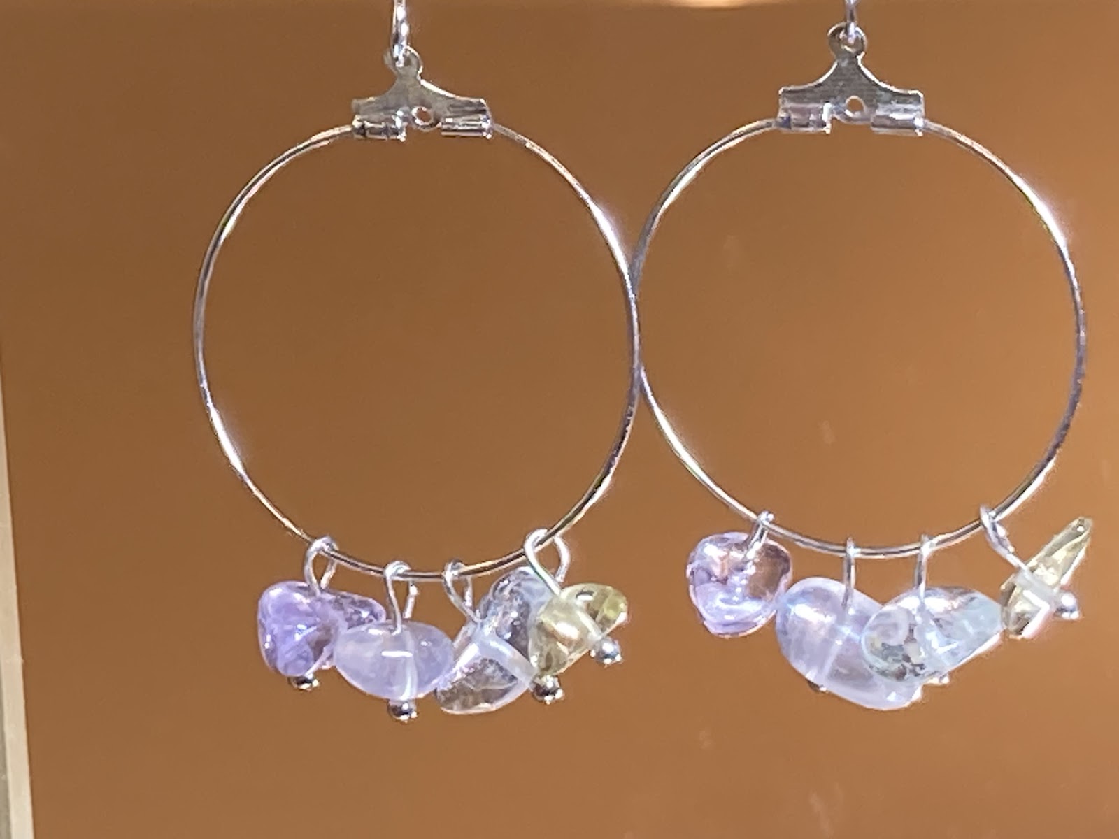 リング型に4色クォーツを1個づつつけました。天然石が揺れてキラキラ光ります。